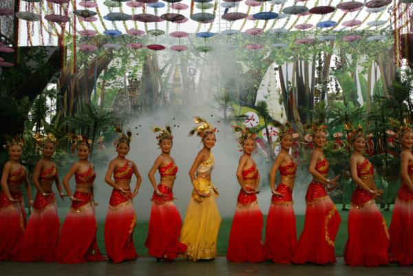 游客在村寨里,可以了解各民族的建筑风格,还可以欣赏和参与各民族的歌舞表演、民族工艺品制作,品尝民族风味食品,观赏民族艺术广场表演和专业水平的演出歌舞晚会,欢度民间喜庆节日,领略56个民族多姿多彩的文化艺术。