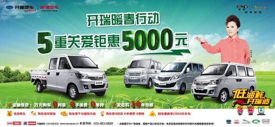 足迹遍及河南、河北、山东、江苏、安徽、云南六省县乡街巷,由优雅2代、优优2代、优劲双排等开瑞汽车的热销产品组成巡游车队,在“暖春行动”的旗帜下,开瑞汽车于春季发起轰轰烈烈的“千村万镇巡游”活动。