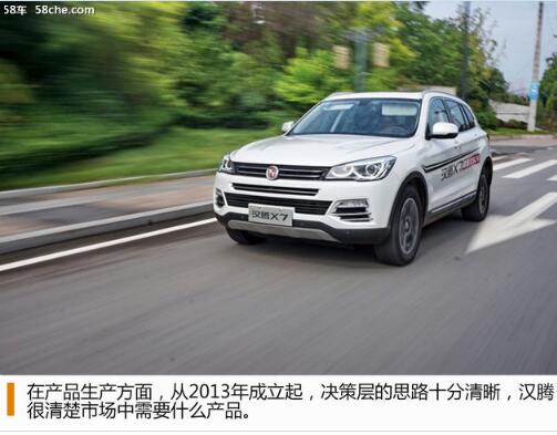 在产品生产方面,从2013年成立起,决策层的思路十分清晰,汉腾很清楚市场中需要什么产品,在SUV市场大火的情况下,汉腾首先以跨级别的汉腾X7征战SUV市场,而后在汉腾X7成功的基础上再次推出了汉腾X5以及汉腾X7S两款车型,以稳固其在SUV市场的优势。正确的决策造就了汉腾汽车的高速发展。