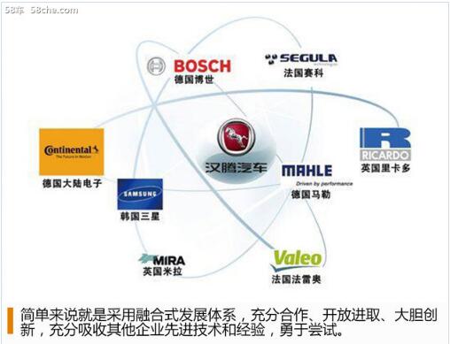 简单来说就是采用融合式发展体系,充分合作、开放进取、大胆创新,充分吸收其他企业先进技术和经验,勇于尝试。 就汉腾自身而言,如今汉腾汽车研究院,下设16个部门,具备整车平台规划、造型设计、数据设计、性能开发、同步工程、新能源开发、试验验证七大核心研发能力,已掌握纯电动及插电式混合动力开发核心技术。此外汉腾还与中汽研、清华大学、德国马勒、英国里卡多、法国法雷奥、英国米拉、德国大陆等企业合作,建立了良好的合作关系。