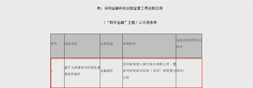 众银行绿色普惠贷款模型成功入选深圳金融科技创新监管工具