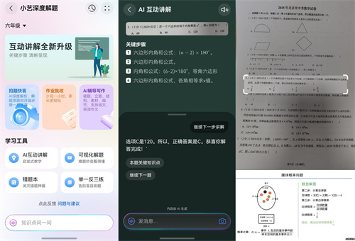对于中小学生家长,期末辅导作业也不用犯愁。遇到难题卡壳,小艺深度解题的AI互动讲解采用启发式教学,可视化解题支持拍题后生成视频讲解,家长批改作业的错题还会自动进错题本,方便集中复盘、举一反三,针对性补强薄弱环节。 家长掌握解题思路,再结合孩子学习习惯因材施教,让亲子共学共成长。